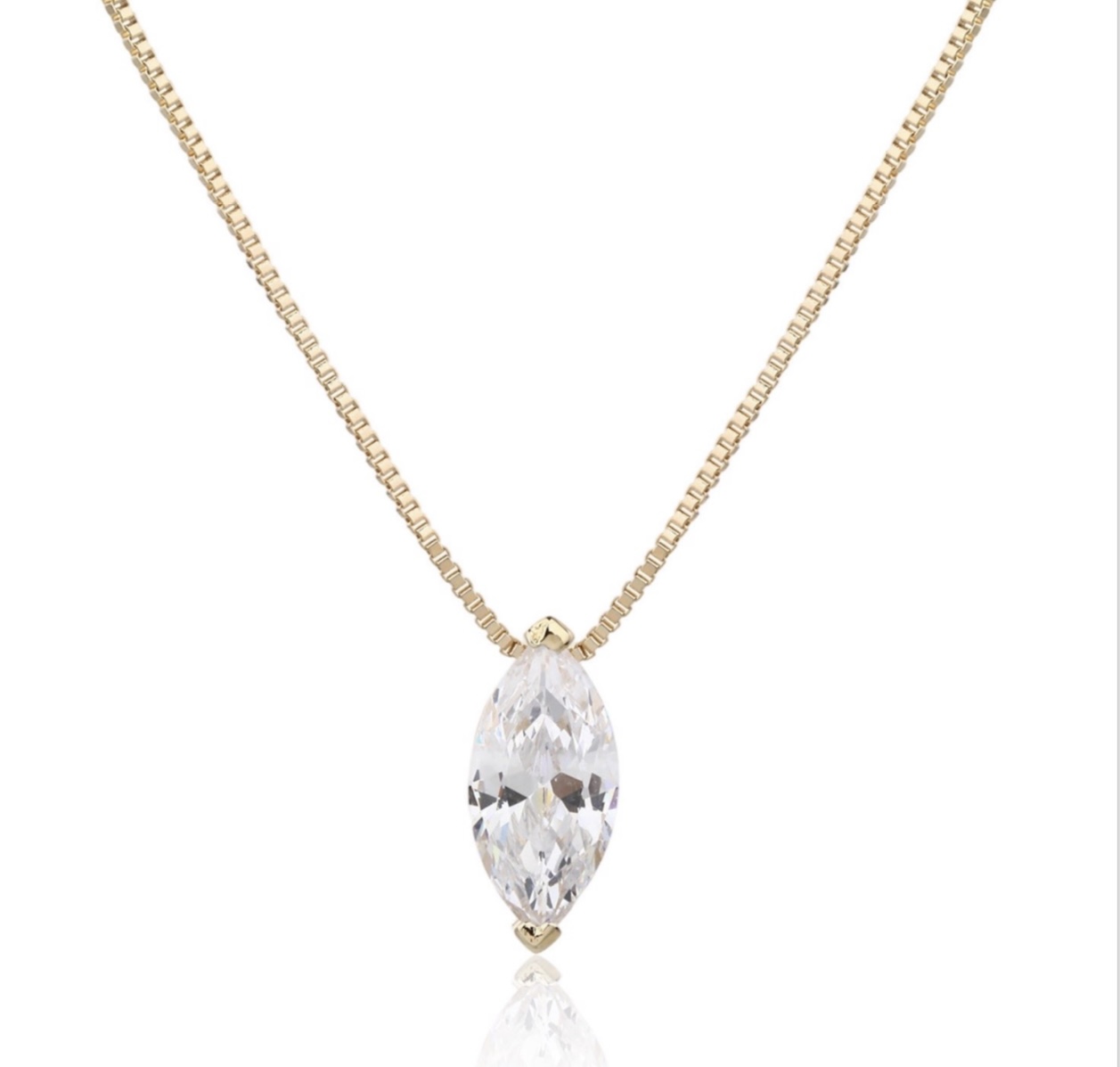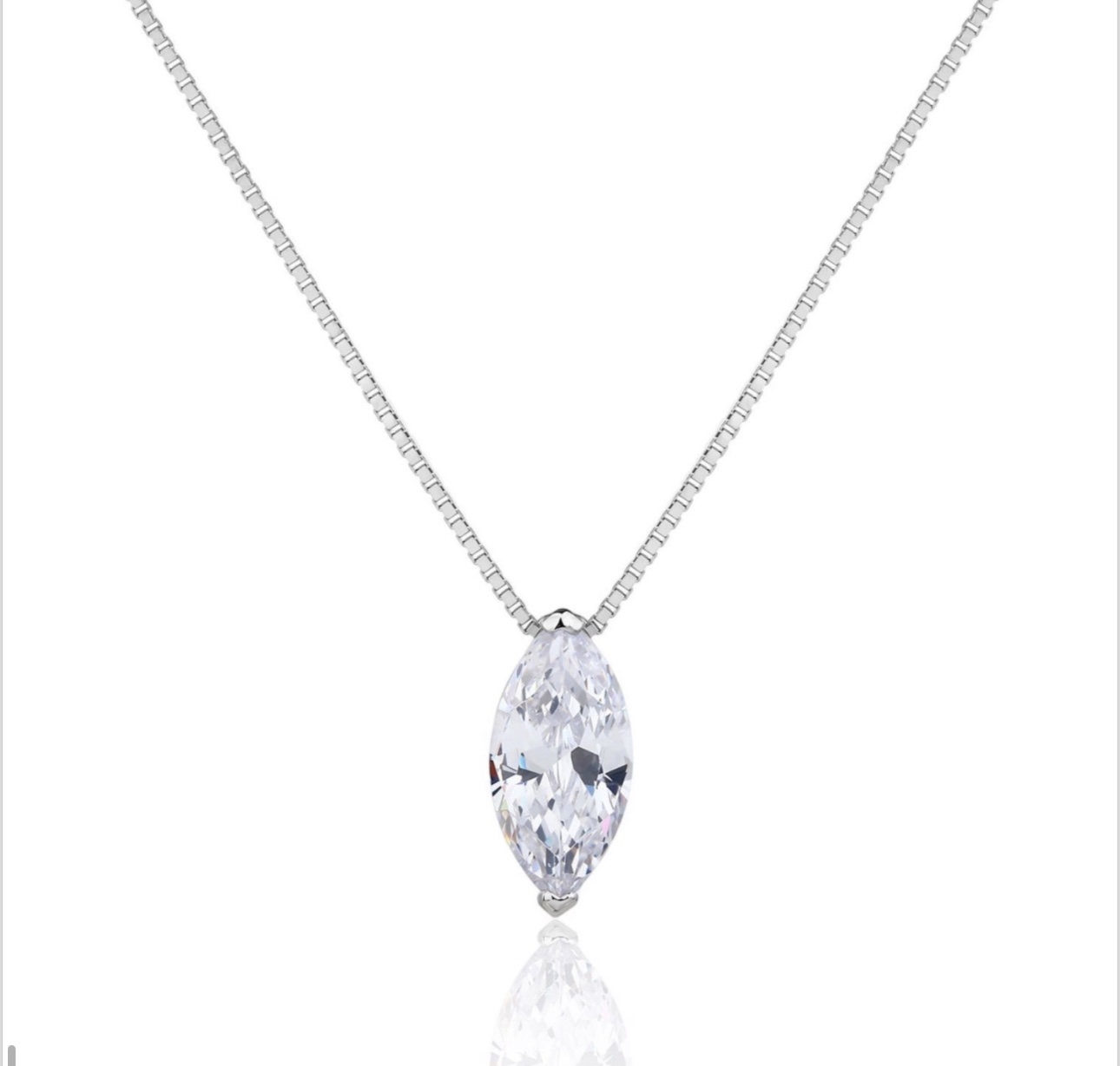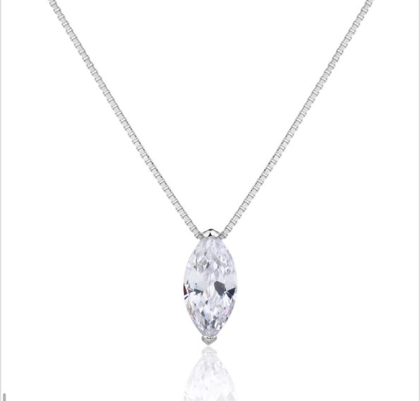 שרשרת עשויה כסף טהור 925, משובץ אבן זרקון מלבנית , אורך השרשרת 35+5 ס״מ.