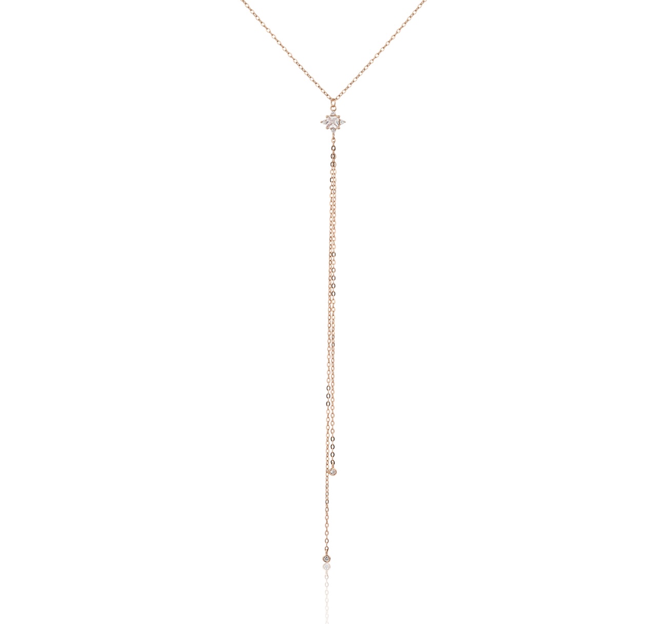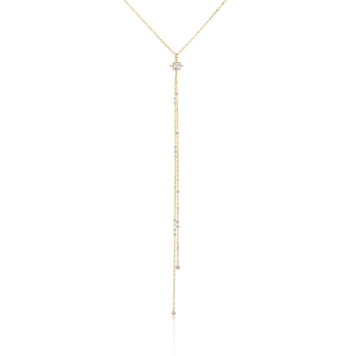 שרשרת עניבה נופלת, עשויה פליז בציפוי 14K, משובצת אבני זרקון , אורך השרשרת 40+5 ס״מ.