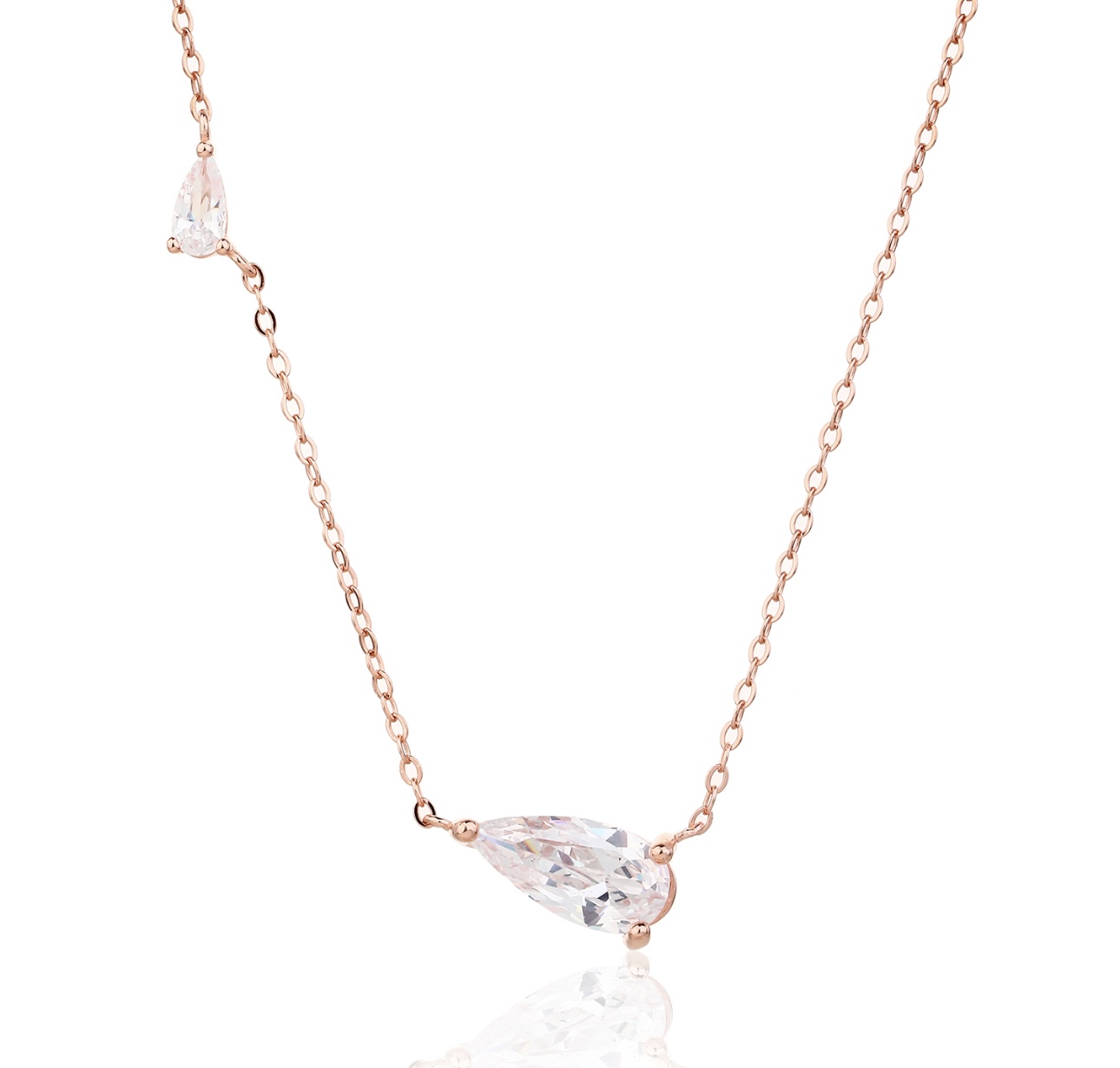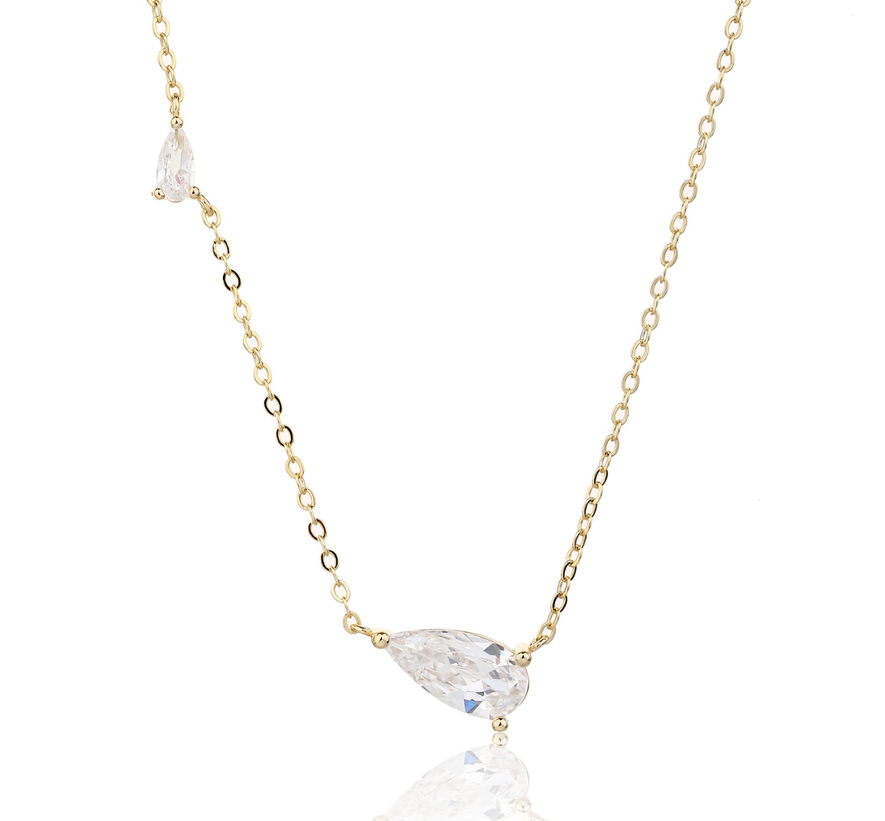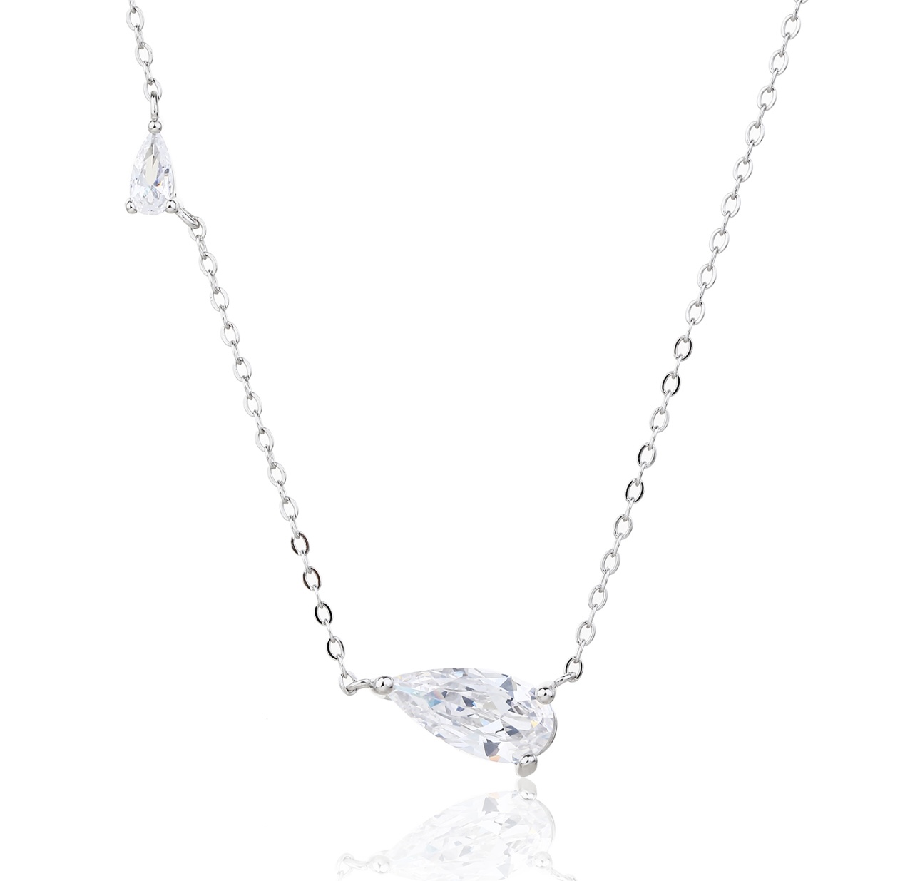 שרשרת כסף 925 בעיצוב קלאסי ועל זמני, עם תליון זרקון נוצץ בצורת טיפה. אורך השרשרת 40+5 ס״מ.